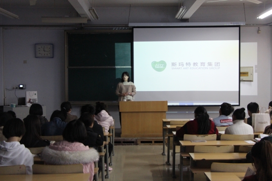当天下午,斯玛特教育集团在郑和国美术楼103教室为我院毕业生举办专场推介招聘会,2018届美术学专业学生积极前往了解就业信息。推介招聘会由副科级辅导员王庆丹主持,他对斯玛特教育集团的情况进行了简单介绍。斯玛特教育集团负责人通过播放宣传片、PPT 展示、面对面交流等方式向同学们介绍公司的概况、职业发展方向、人员需求以及选择该单位的理由等。在最后的咨询答疑环节,我院学生在咨询了薪资的同时,对个人未来发展前景及员工培训方面表现出更多的关心,能够以更长远的眼光看待就业问题。
