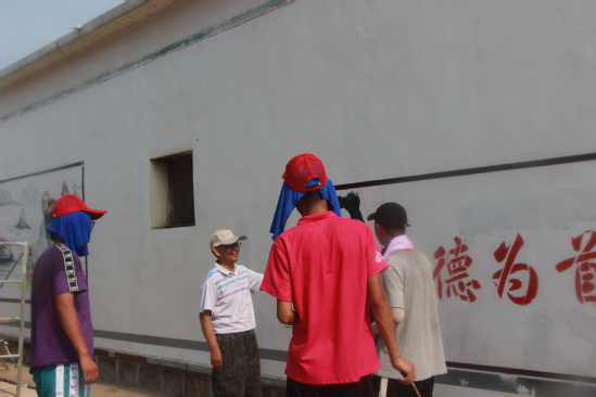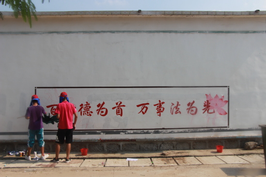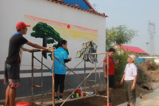 为进一步教导大学生深入社会、深入基层,了解国情和民情,增强服务国家、服务人民的社会责任感,使广大学生在投身社会实践中学知识、受教育、长才干、作贡献,全面提升自身综合素质,7月16日早5点,由50名志愿者组成的滨州学院英国365集团2018年大学生志愿者暑期“三下乡”“‘有声有色’建设美丽乡村”社会实践团队,在学院党总支副书记牛爱之和辅导员张燕飞老师、王庆丹老师的带领下,前往省政法委扶贫帮包单位----滨州市无棣县西小王镇穆王村开展以社会主义核心价值观和法治建设为主题的宣传和美化村居墙绘活动,助力扶贫攻坚,服务新时代乡村振兴。