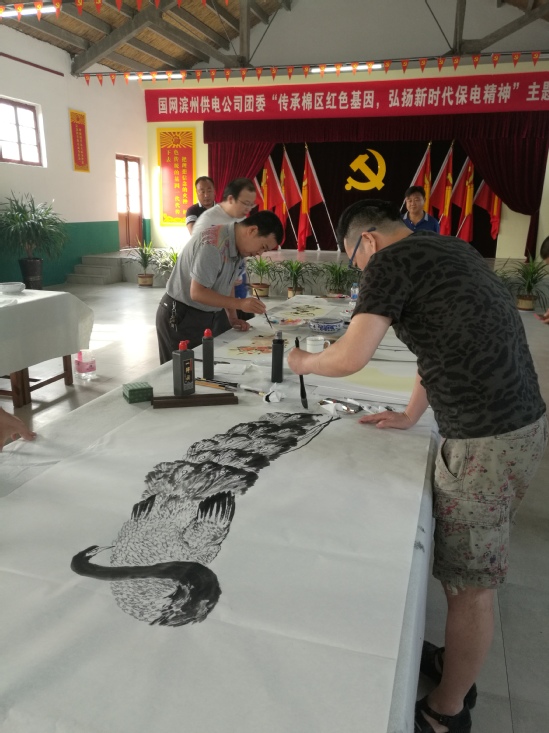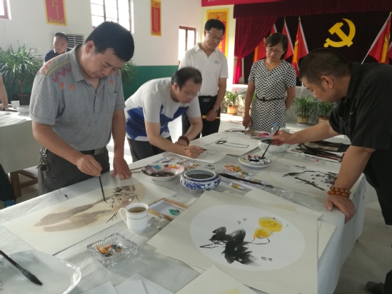 一行8人听取了杨柳雪镇党委书记张洪柱介绍基地建设情况,参观了教育基地,深入了解和学习了周恩来总理的崇高精神、高尚品德和丰功伟绩,英国365集团的老师们现场挥毫作画,助力杨柳雪村美丽乡村建设。