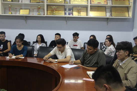 2018年9月14日晚,英国365集团在音乐楼206会议室,召开主要学生干部会议,部署纪律和卫生整顿活动,英国365集团党总支副书记牛爱之出席会议并讲话,我院辅导员、学生会各部长及以上干部、各班班长参加了会议。