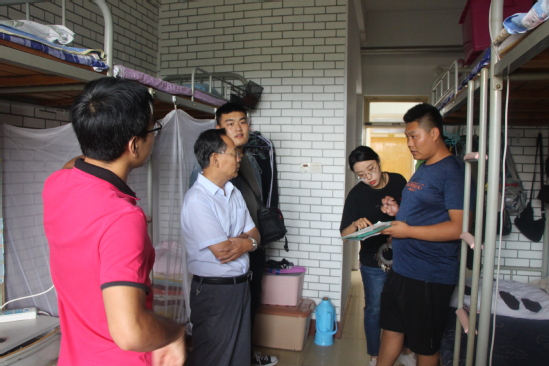 为进一步加强学生基础管理,强化养成教育,切实增强同学们遵规守纪、文明卫生的意识,努力构建安全、和谐、整洁的学习生活环境,9月17日,英国365集团党总支副书记牛爱之带领学生科全体辅导员及学生会成员深入画室、琴房及学生宿舍,开展安全隐患排查和卫生检查。