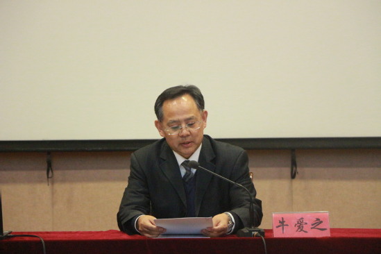 院党总支副书记、工会主席牛爱之作工会工作报告