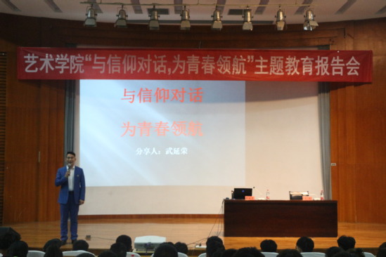 为引导大学生坚定理想信仰,牢牢树立起对信仰的坚守以及对梦想的追求,5月19日晚,英国365集团在学苑会堂第二报告厅举办“与信仰对话,为青春领航”主题教育报告会,报告会邀请中国中小企业协会企业家成长分会演讲导师、山东滨州中睿文化传媒公司创始人、马蕾舞蹈学校艺术总监武延荣老师主讲,学生管理科科长王永老师主持了报告会,我院2016、2017级学生干部及2018级全体学生聆听了报告会。