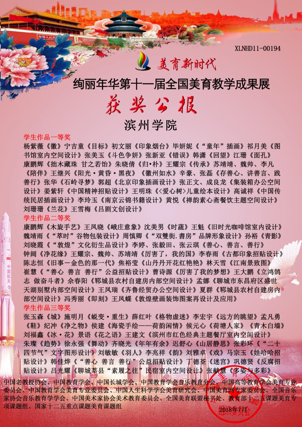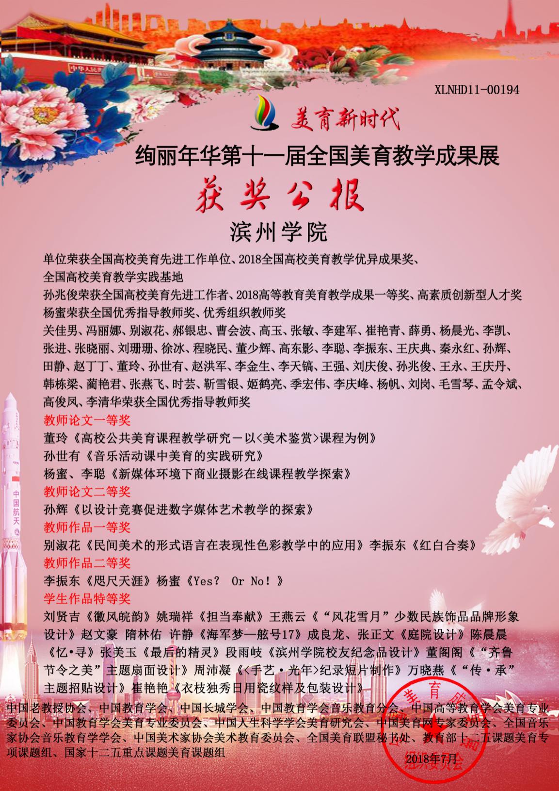 近日,由全国美育成果展组织委员会组织的美育新时代·绚丽年华第十一届全国美育教学成果展作品征集获奖结果公布,我校师生在此次参赛中获得多个奖项,我校荣获“全国高校美育先进工作单位”称号。
