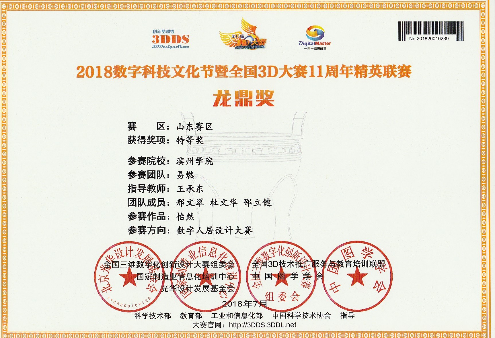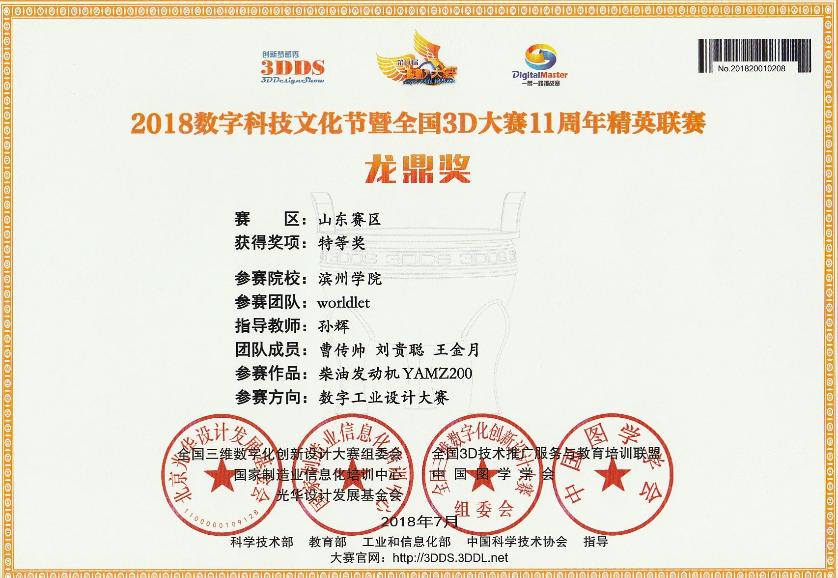 由国家科学技术部、工业和信息化部、教育部、中国科协等部门指导,国家制造业信息化培训中心、国家两化融合创新推进联盟、3D动力千企百校产教联盟、中国图学学会等单位共同主办的“2018年第十一届全国三维数字化创新设计大赛精英联赛”山东赛区比赛落下帷幕,我院选送的参赛作品获大赛特等奖8项、一等奖18项、二等奖16项、三等奖1项。
