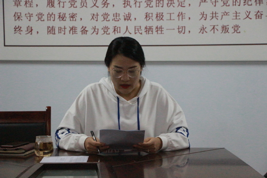 随后张燕飞老师带领全体党员重温入党誓词,在领誓人的带领下,全体党员面向党旗举起右手郑重地宣誓,重温入党誓词,坚定初心,接受心灵的洗礼和党性再教育。