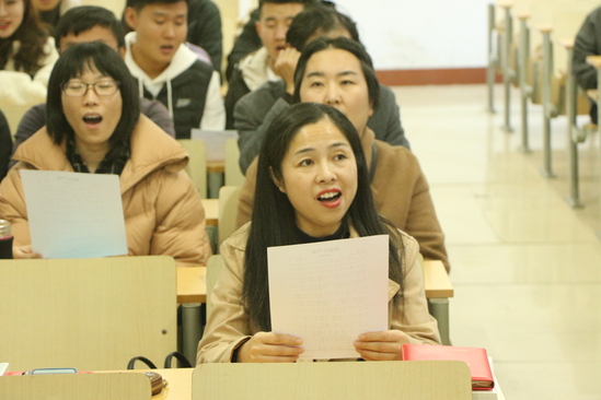 活动中,全体师生集体演唱了《唱响正气歌》,这首歌曲是著名作曲家张宏光专门创作的一首廉政歌曲,歌词通俗易懂、旋律流畅激昂,老师们通过歌曲的演唱,进一步激发了作为一名党员的自豪感和使命感,他们纷纷表示,在工作生活中,要真正做到歌词中写的一样“一身正气走 两袖清风杨”。