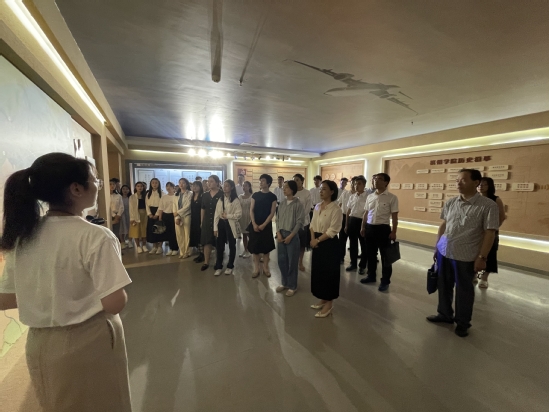 6月22日,党总支书记王秀丽带领毕业生党员和党总支理论学习中心组成员前往我校校史馆进行参观学习,感悟校史底蕴。全体人员面对党旗重温了入党誓词,在讲解员的讲解和带领下进行了参观,深入到滨州学院的历史空间,见证我校创业发展的点滴历程。展馆内珍贵的实物档案资料以及展板上丰富的图文介绍,频频引发同学们的驻足围观,时不时与老师交流探讨。