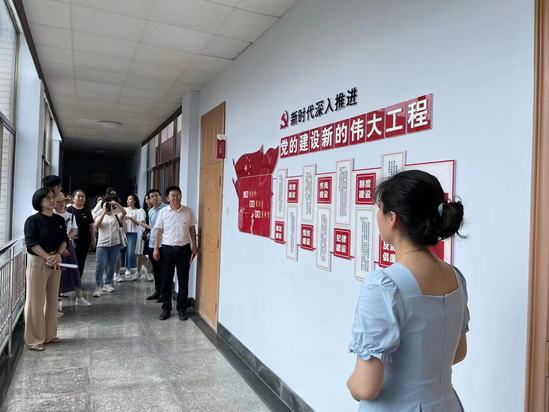 7月1日上午,党总支书记王秀丽带领全体教工党员观看了“百年奋斗路 启航新征程”党建文化长廊。在讲解员的引导下,全体党员在“党建+美育”红色文化育人工程打造的党建文化长廊的珍贵图片前抬头观看,仔细聆听讲解,共同回顾党的奋斗历程,通过一幅幅精美的美术创作再现中国共产党的奋斗历程和学院党建业务双融双促的育人实践,接受了一次深刻的党性教育。