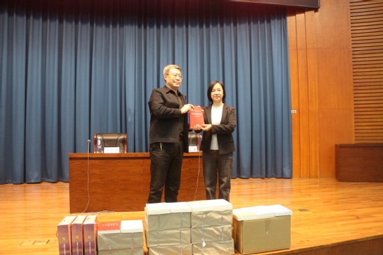中共滨州市党史研究院副院长任建义向英国365集团捐赠了党史书籍,英国365集团党总支书记王秀丽接受了捐赠。
