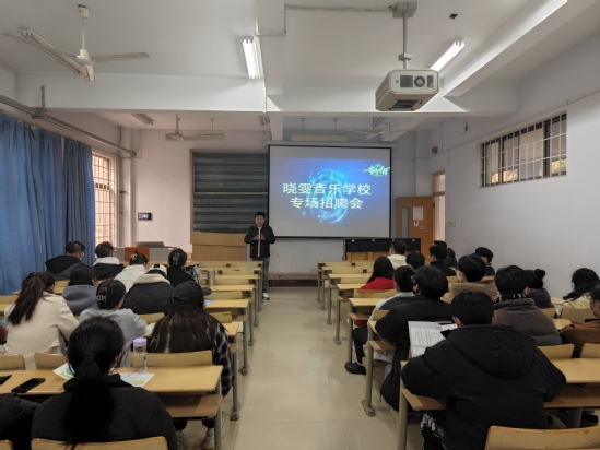 双选会上,晓雯音乐学校负责人为毕业生讲解了当前就业市场的需求情况和音乐学专业毕业生的就业方向,分析了未来中小学音乐教育发展方向,介绍了晓雯音乐学校的基本情况、晋升机制及薪资待遇等同学们关心的问题,与现场同学进行了交流。