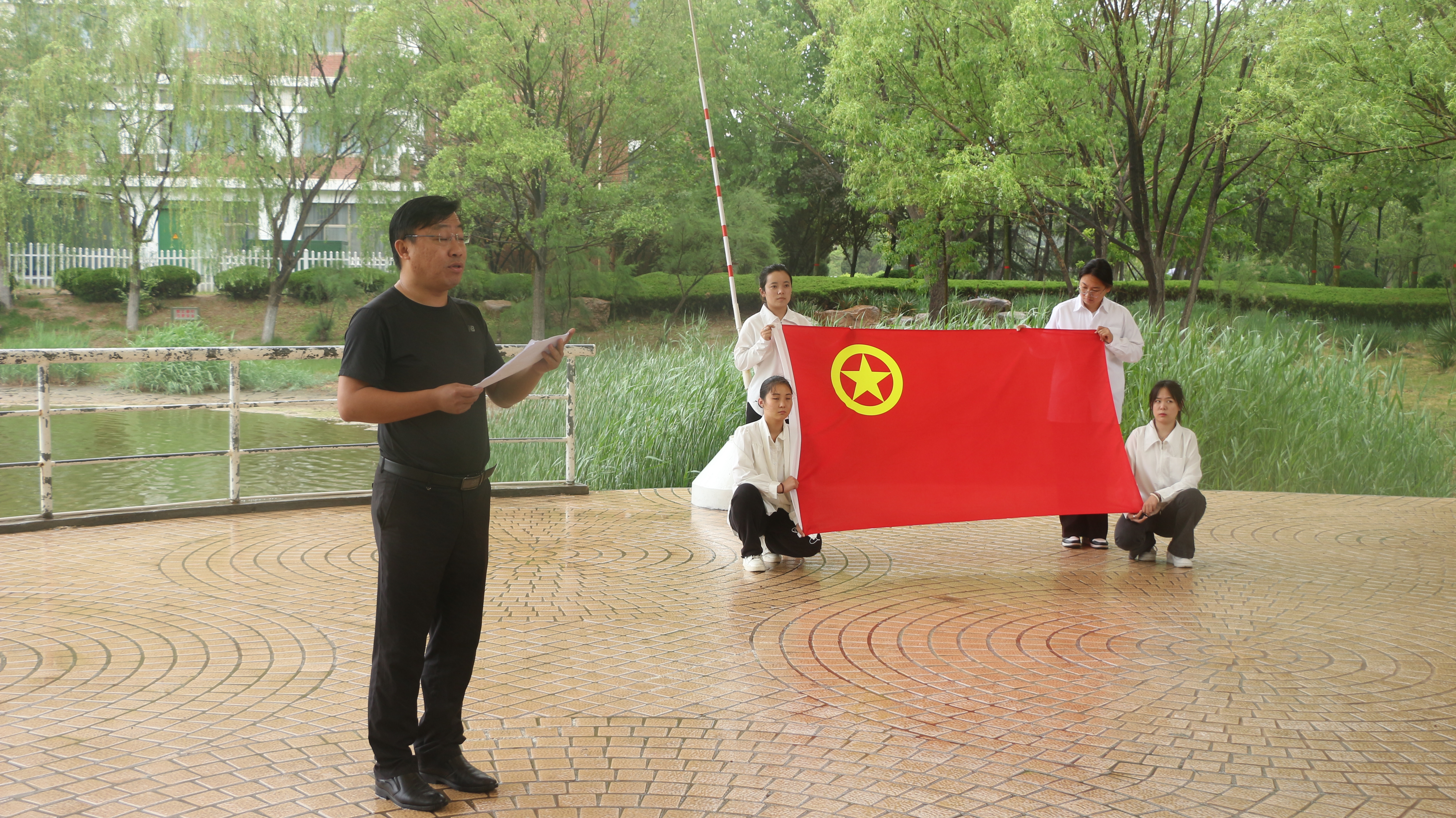 仪式第二项,团总支书记王永讲话,宣读了新入团的人员名单,他表示,新团员们是团组织的新鲜血液,为团组织注入的新生力量,大家要向着自己的入团誓言不断努力、奋斗。