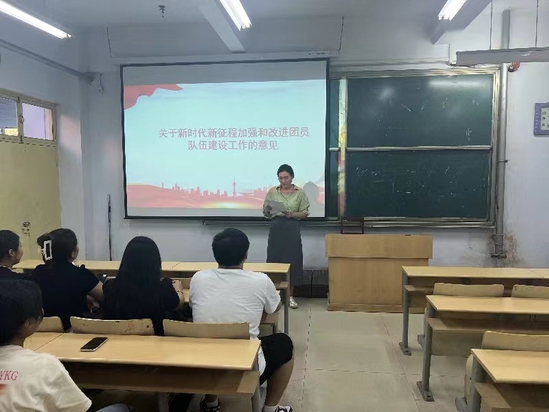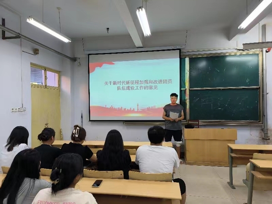 会上,团总支老师带领大家一起学习了《关于新时代新征程加强和改进团员队伍建设工作的意见》《中国共产主义青年团发展团员工作细则》。她指出,着眼引领青年追求政治进步,要注重源头把关,加强过程培养,广泛吸收各领域青年中有理想、敢担当、能吃苦、肯奋斗的先进分子入团,不断提高新发展团员质量,巩固团员队伍基础。要坚定不移听党话、跟党走,与祖国共奋进,与人民同奋斗,源源不断为党输送健康有活力的新鲜血液。