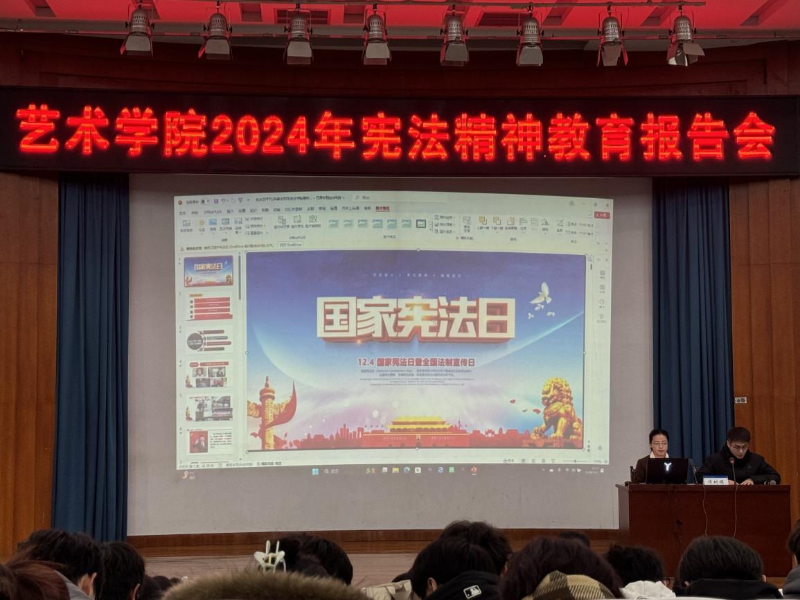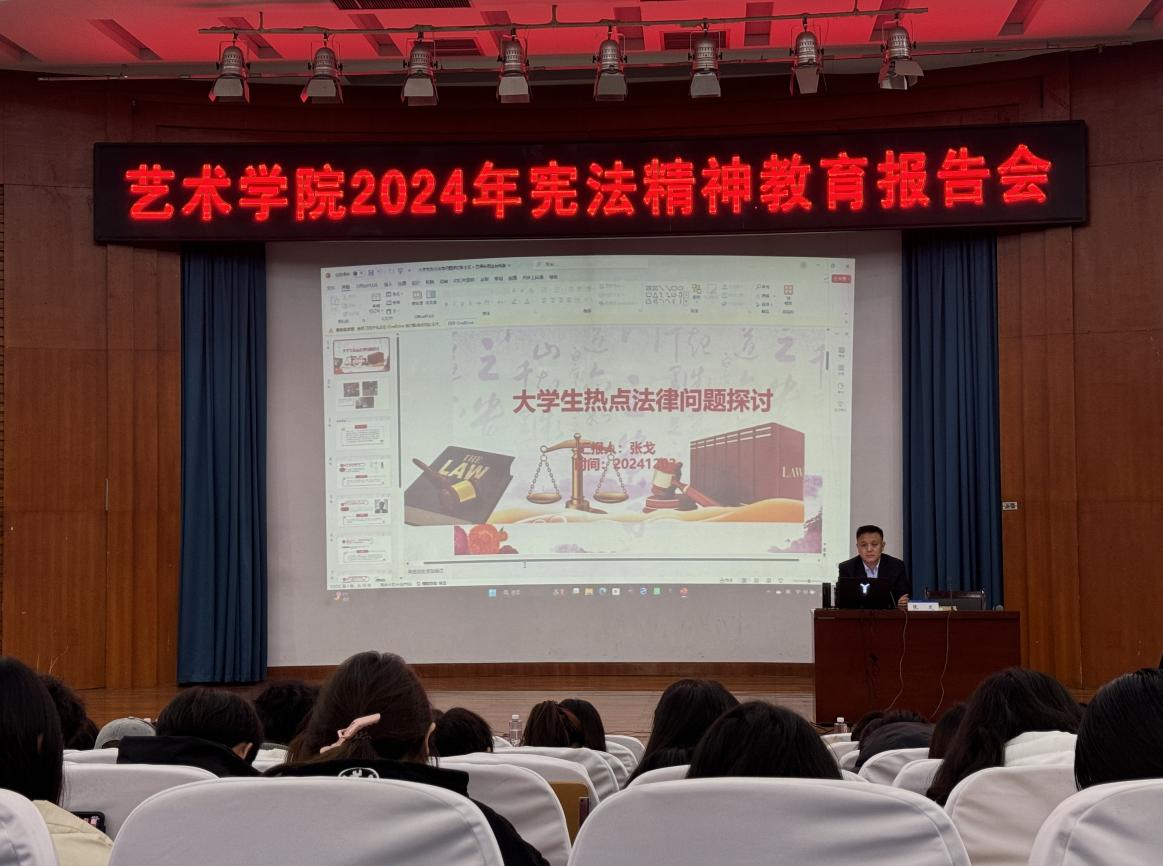 为深入普及宪法知识,弘扬宪法精神,助力法治校园建设,12月3日晚英国365集团2024年宪法精神教育报告会在学校明德报告厅举办。本次报告会由山东中捷律师事务所支部书记张戈书记、谭树娟律师主讲,学院党总支副书记秦玉国、2024级全体学生及部分学生干部参加本次报告会,辅导员段兆岢主持。