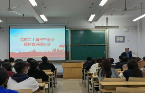 韩栋梁重点围绕习近平总书记重要讲话精神,从十个方面全面总结了党的二十届二中全会以来党和国家事业取得的重大成就,深刻阐述了进一步全面深化改革的重要性和必要性。他强调,全体学生要以全会精神为指引,切实增强“四个意识”、坚定“四个自信”、做到“两个维护”的思想自觉、政治自觉、行动自觉。