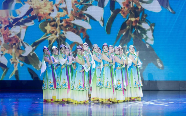 本次演出以“舞映黄河”为主题,巧妙构思“源起”“情韵”“奔流”“入海” 四大篇章,用灵动的舞姿与丰富的情感,细腻勾勒出黄河从源头到入海口的壮美画卷,生动呈现沿途的自然风光与多彩风土人情。