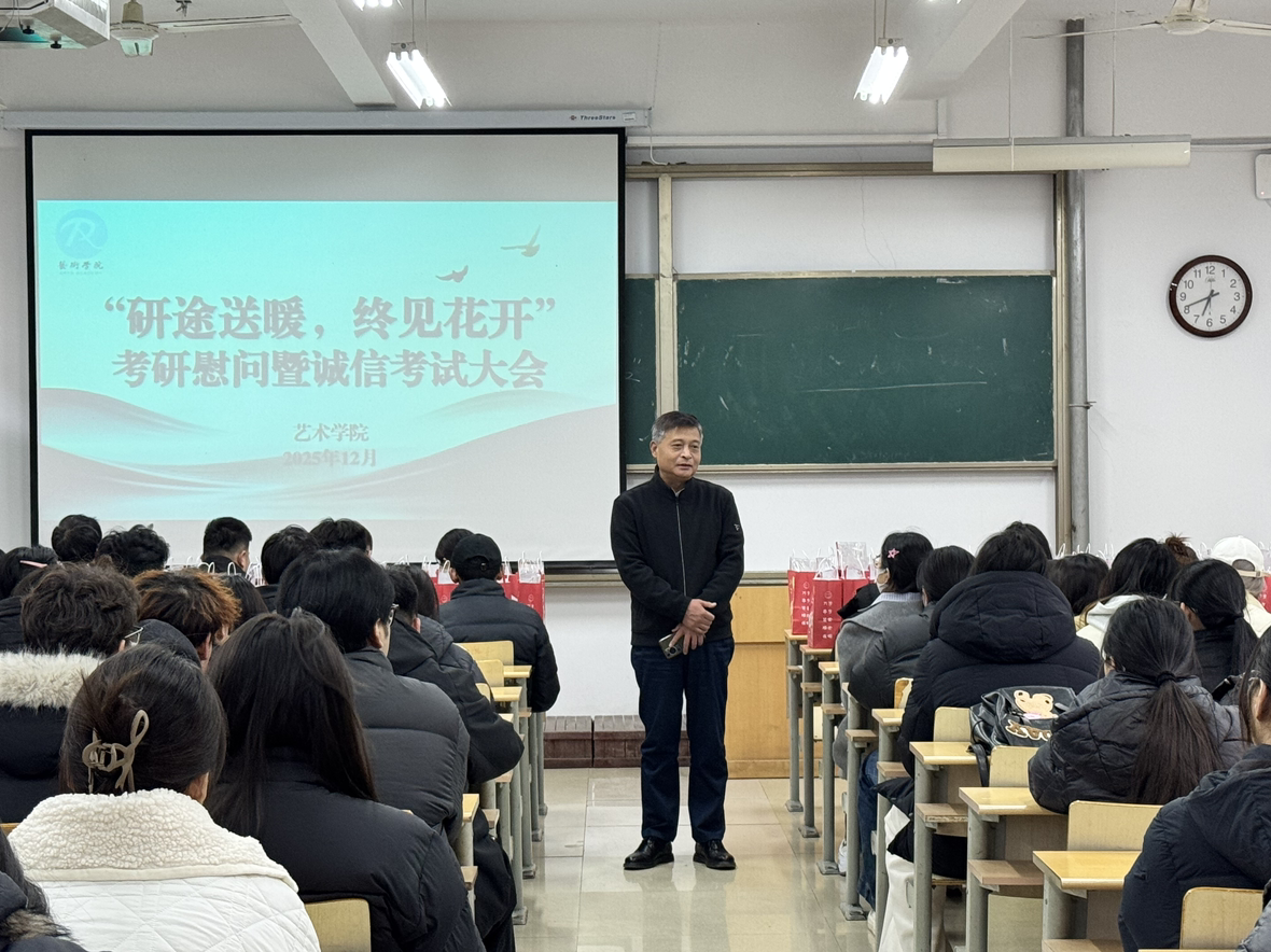 窗外寒风凛冽,室内暖意融融。随着全国硕士研究生招生考试进入最后冲刺阶段,我院于2025年12月18日下午,在美术北楼104举办了一场温馨而有力的研究生考前慰问动员活动,为正在备战考研的学子们送去关怀与鼓励。