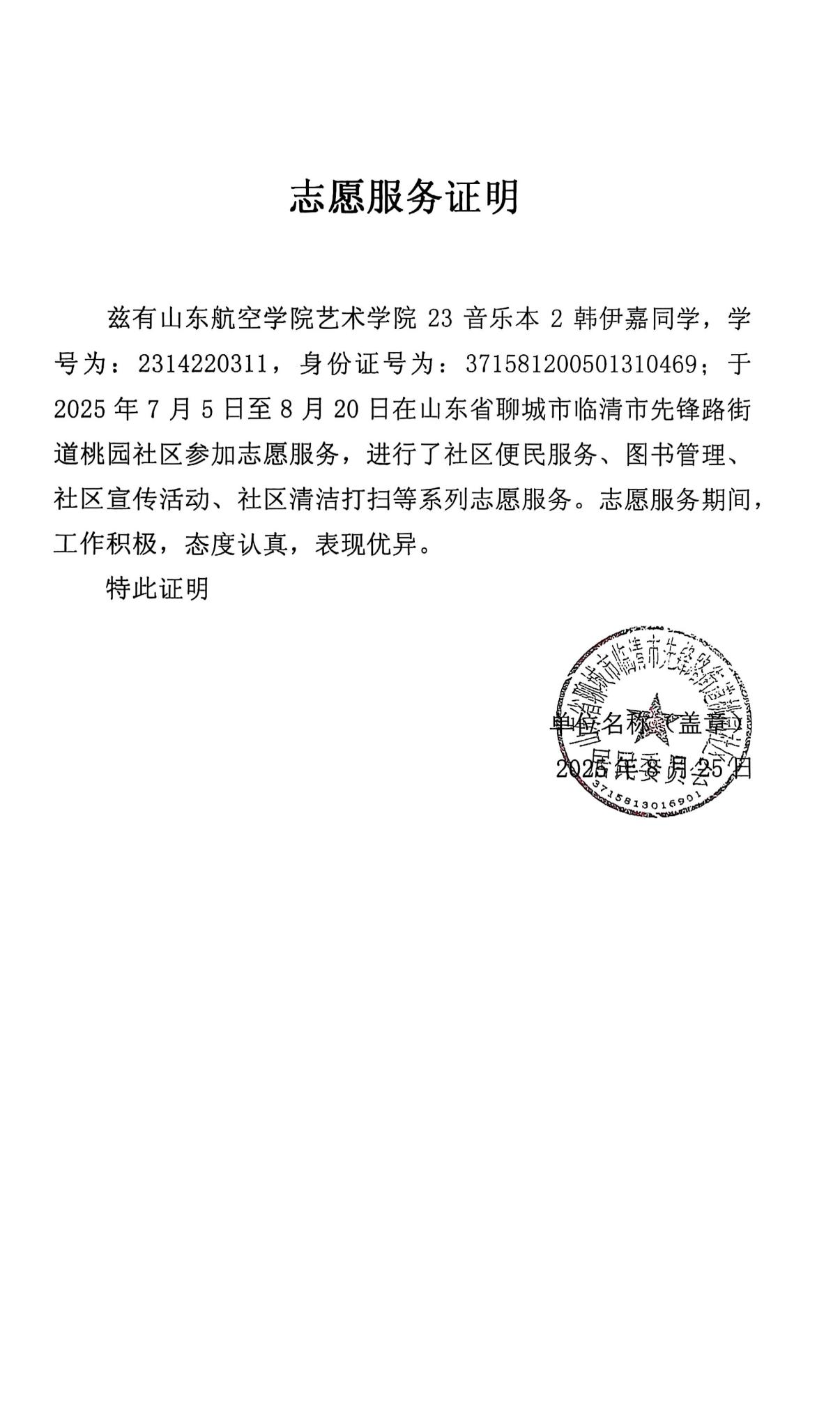 作为365上市公司23音2的学生,韩伊嘉在2025年7月5日至8月20日,以临清市先锋办事处桃园社区实践生的身份,把“专业技能”揉进了社区日常,也让家乡文化在青春视角里有了新的传播温度。