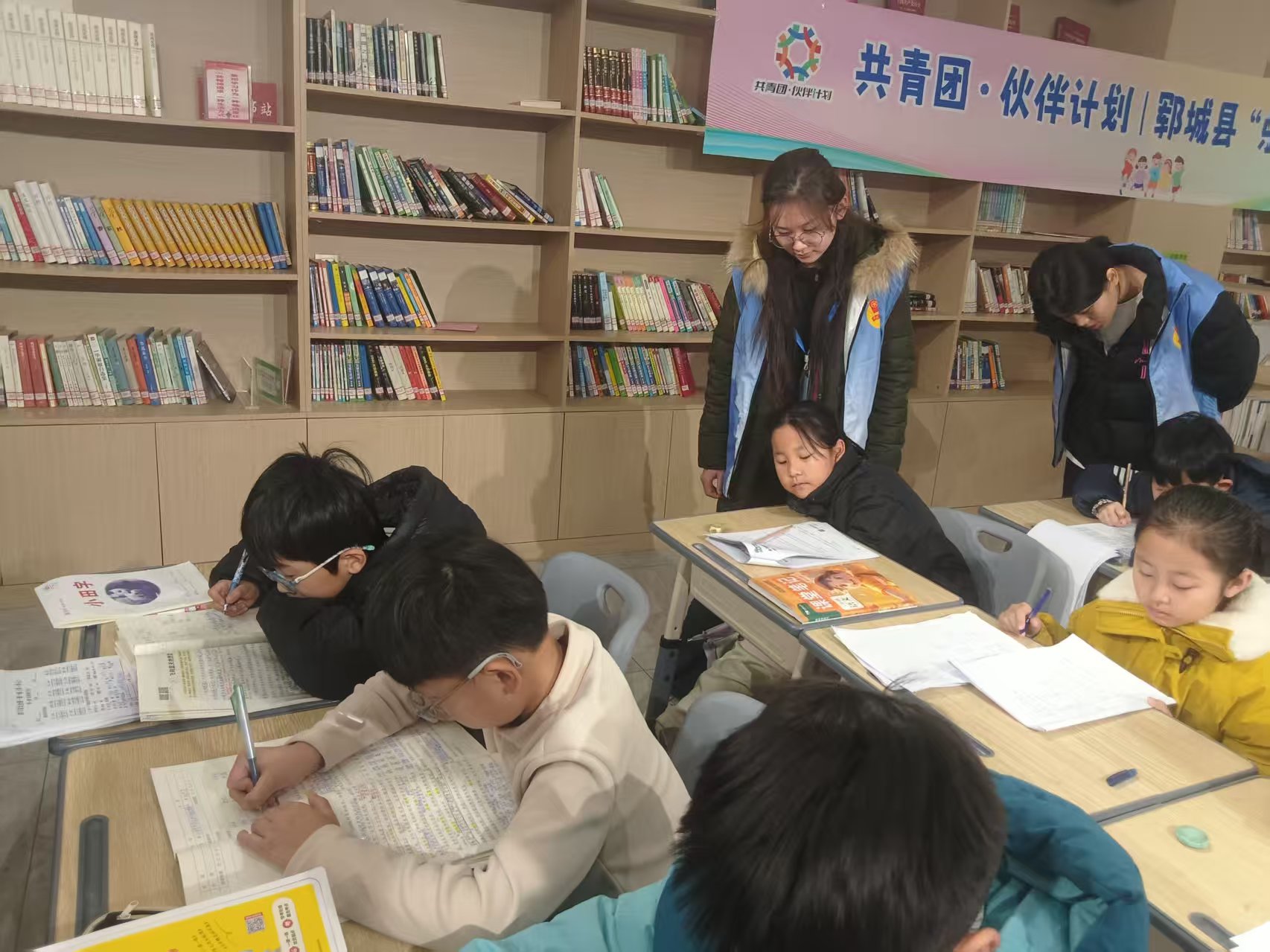 2.作业辅导:每日上午为作业辅导时段。她耐心解答小朋友们语文、数学和英语等学科疑问,针对基础薄弱学生进行一对一讲解,引导独立思考而非直接给出答案;督促孩子合理规划时间,纠正拖拉、粗心等问题;及时记录学习情况,鼓励进步,帮助建立学习信心。教学地点安排在一间书屋,也帮助小朋友们养成爱读书的好习惯。
